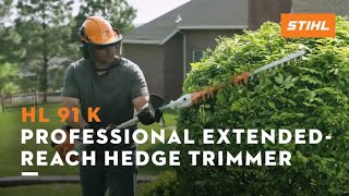 Keep hard-to-reach hedges looking good with the STIHL HL 91 K (0°) extended reach hedge trimmer. Built for professional use, this mid-length hedge trimmer is lightweight and features a fixed-angle, 24" cutting blade. Easy to operate, the HL 91 K (0°) features a powerful, fuel-efficient, low-emission engine. Its compact design provides excellent maneuverability and includes an innovative ergonomic rubberized control handle with ECOSPEED throttle control, allowing for variable speed regulation. This convenient tool is designed to help professionals work longer with reduced fatigue. |
