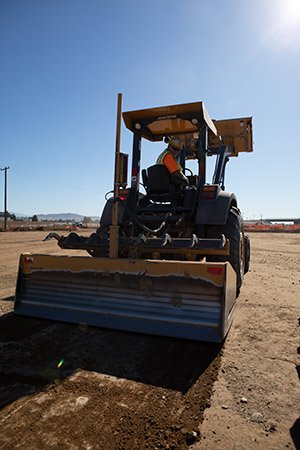 Mechanical Front Wheel Drive (MFWD) with open differential is the standard configuration for all tractor loaders. The main MFWD on/off control is mounted on the front console.
