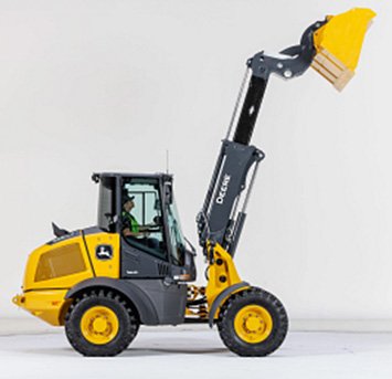 P-tier compact wheel loaders continue to feature industry exclusive Articulation Plus™ that adds rear wheel steering to increase full turn tipping load and improve maneuverability