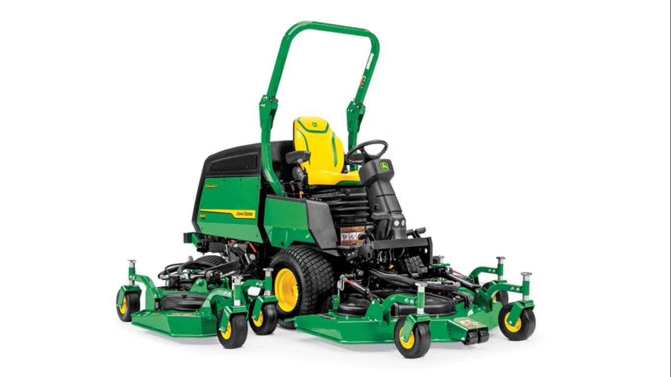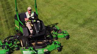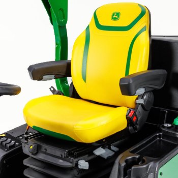 The comfortable seat, along with ample legroom in the operator's platform, convenient pedal locations, and adjustable steering column make operator comfort on the John Deere 1600 Turbo TerrainCut™ Wide-Area Mower among the best in the industry. |