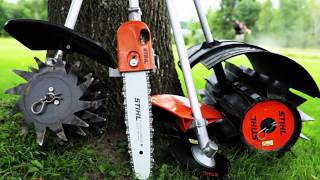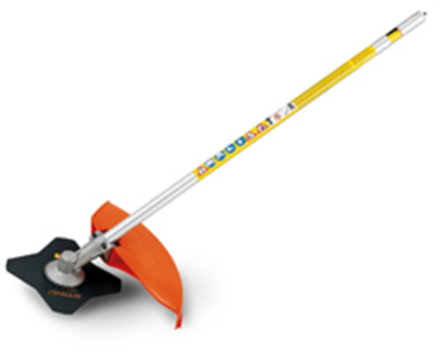 FS - KM straight shaft brushcutter KombiTool with metal blade for STIHL® KombiSystem, used for mowing heavy grass and weeds. All attachments sold...